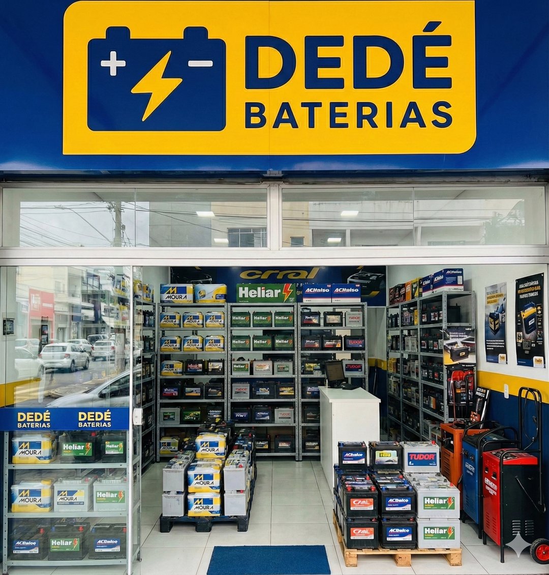 Dedé Baterias é especialista em bateria de carro, bateria automotiva e tudo que envolve energia veicular, oferecendo troca de bateria rápida, instalação de bateria no local e assistência técnica de bateria de carro com atendimento ágil, seguro e focado na resolução imediata do seu problema; trabalhamos com as melhores marcas do mercado, fazemos diagnóstico preciso, entrega rápida e suporte completo para garantir que seu carro volte a funcionar sem dor de cabeça; seja na loja ou no atendimento móvel, nossa equipe está pronta para oferecer a solução ideal com preço justo, qualidade garantida e serviço profissional para motoristas que precisam de confiança e agilidade. Empresa especializada em venda e troca instalação de baterias veiculares